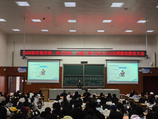 为扎实推进2026届毕业生就业工作,加快构建实习与就业一体化机制,11月3日下午,经济与管理学院在西附楼D103组织召开2026届市场营销、财务管理、金融工程专业实习动员暨就业教育大会。学院领导班子、各系主任、相关办公室负责人及毕业生参会。院长贾先文主持会议。