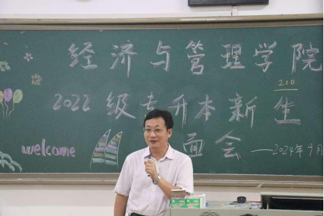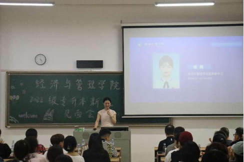 为帮助2022级专升本新生尽快融入大学生活,加强专业认知,培养良好习惯,明确学业规划,9月6日下午4点,经济与管理学院在西附楼D102召开2022级专升本新生见面会。学院领导班子、各系主任代表、全体辅导员以及2022级全体专升本新生共100人出席会议。会议由学院党委副书记杨腾主持。