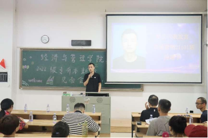 随后,国际经济与贸易系主任沈启超老师以“大学之道”为主题,与同学们进行了分享和讨论。他希望大家从明确学业规划和职业规划、积极参与实践活动、提高综合素养和专业技能等方面完善自我,在未来的学习与生活中立足新起点、迎接新挑战、力创新成绩。