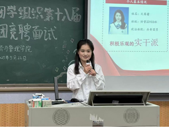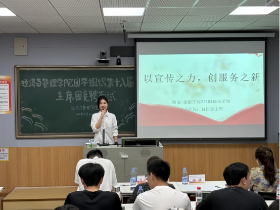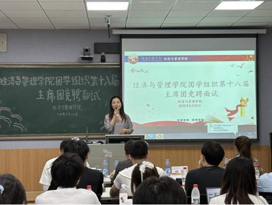 为进一步加强团学组织建设,选拔出富有责任感、创新力与领导能力的优秀学生干部,5月22日上午8点,经济与管理学院团学组织第十八届主席团竞聘在西附楼D203开展。学院党委书记王良波,党委副书记杨腾,全体辅导员和第十七届全体主席团成员出席活动并担任评委。本次竞聘分为笔试、面试和实操三个环节。