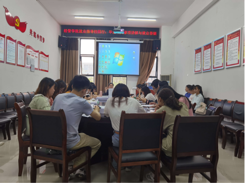 2021年5月12日下午15:00,经济与管理学院在西附楼D102举行了主题为“经管学院就业指导校园行:毕业相关事项讲解与就业答疑”的会议。主持本次会议的是学工办杨理老师,参加本次会议的有17级各班的三大班委。
