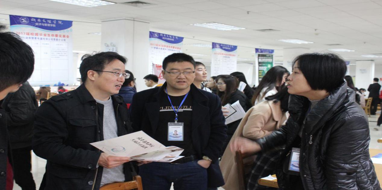 | 11月19日上午,经济与管理学院2017届毕业生供需见面会在湖南文理学院图书馆大厅举行。近90家用人单位和我院以及许多闻讯赶来的其他学院的毕业生近千人参加了本次招聘会。