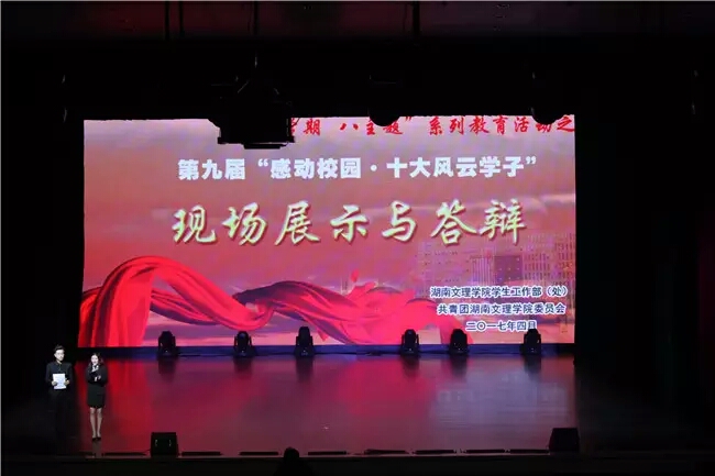 2017年4月18日下午一点,在演艺中心举办了湖南文理学院第九届“感动校园·十大风云学子”活动的现场展示与答辩。