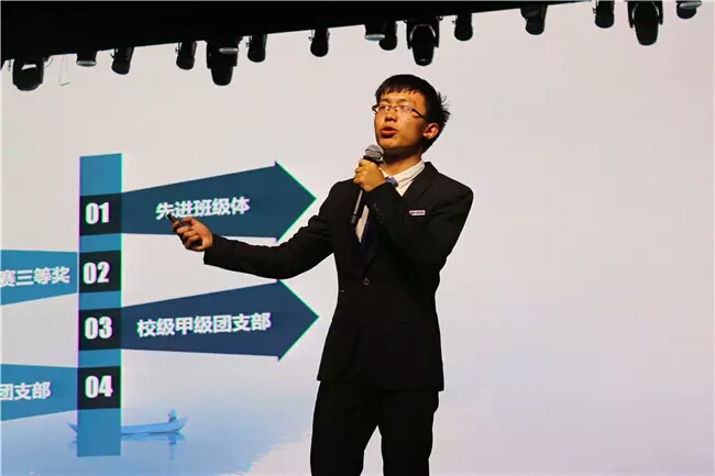 第十项候选人经济与管理学院财务管理15101班,班长李文杰作为代表从班级简介、班级活动、获奖情况三个方面向我们大家展示了一个团结有活力的C15101。你们都是微小的发光体,但你们凝聚在一起就发出耀眼的光芒。你们从入学开始就被印上C1的印记,你们就是最棒的C15101!
