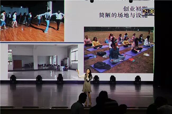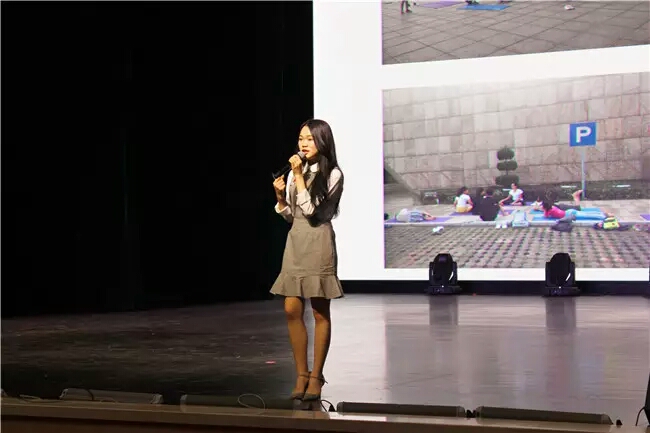 第九项候选人冯楦芮同学讲述了她的创业经历。最开始亲自装修工作室的艰辛、身体受伤的低迷期、外出学习经验的孤独没有击倒她,却使她把一个小工作室变成有规模的舞蹈培训班。最后的答辩环节,她分享了自己的三个关键词:勇敢、坚持、热爱,因为热爱所以勇敢,因为勇敢所以坚持。